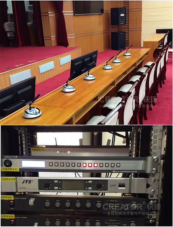 河南焦作人民检察院对其大礼堂及会议室进行了智能化的建设。分别采用了CREATOR快捷中央系统一键化控制其声光电设备,如:各处照明及舞台灯光、现场会议设备、音响设备、信号切换设备、门禁开关、窗帘闭合、屏幕开关机显示信号内容等。