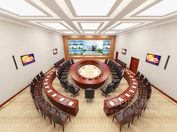 指挥大厅的信号网络分内网和外网,其中内网用于内部会议,外网用于远程会议。系统需要既支持本地会议信号的接入管理,便于内部会议的召开,又支持远程会议信号的接入管理,便于迅速开动紧急视频会议,拨通地级市、县分会场,下达应急措施。