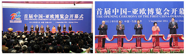 首届中国亚欧博览会于9月1日至5日在新疆乌鲁木齐会展中心隆重开幕,本次博览会共吸引了来自30多个国家超过30万人参展参观,其中到会嘉宾及客商有5万多人,包括中共中央政治局常委国务院副总理李克强、国家商务部副部长傅自应、联合国贸发会议秘书长素帕猜·巴尼巴、巴基斯坦伊斯兰共和国总统扎尔达里先生、吉尔吉斯斯坦总统奥通巴耶娃女士、阿塞拜疆共和国副总理沙里福夫先生、哈萨克斯坦副总理伊谢克舍夫先生、匈牙利共和国前总理迈杰希先生、全国人大常委会副委员长司马义·铁力瓦尔地先生、香港特别行政区行政长官曾荫权先生、澳门特别行政区行政长官崔世安先生和来自33个国家代表团团长,有关国际组织负责人,外国驻华和我国驻外使节,27个国家有关部委,30个兄弟省区市和4个计划单列市领导,世界500强企业高管等重量级嘉宾。