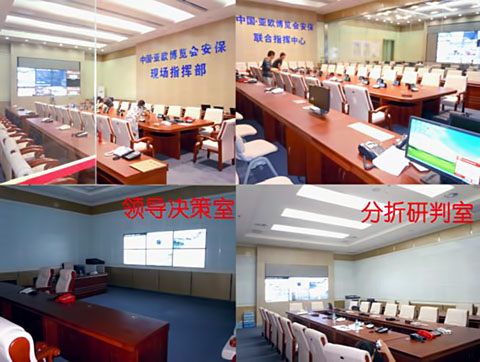 为了保障首届中国-亚欧博览会顺利召开,实现"安全第一、零差错率"的目标,新疆公安厅在亚欧博览会现场设立了四个安保会议室:现场指挥部、联合指挥中心、领导决策室、分折研判室。CREATOR快捷技术人员按现场用户要求对四个会议室编写了如下功能:每个会议室都配了一套拼接大屏,所以每个会议室相应配有一套ST-7600C无线画中画真彩触摸屏,四个会议室共用一台PGMII中控主机和AV12896音视频矩阵,每个触屏都可以控制大屏的开与关、组合模式、及任意调配监视--场馆图像、场外交通指挥图像、远端会场图像等等。
