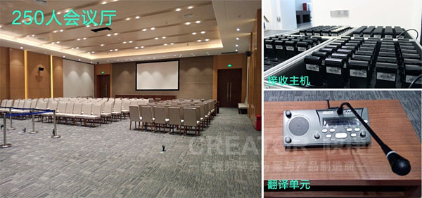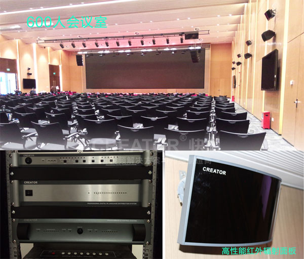 而所有的翻译均来自同传室翻译人员,他们一方面通过耳机收听会场中各个发言人连续不断的讲话,并几乎同时的将信息内容准确、完整的翻译成目的语,通过翻译单元CR-DIG5203E3传输至红外发射主机,主机将语音转化为红外码并由辐射面板发出,出色完成整个同声传译工作。
