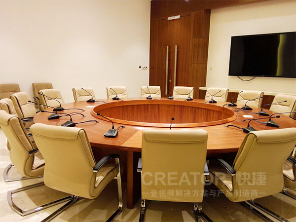 佛山商务中心所有会议场所指定采用CREATOR快捷品牌的会议系统,51套现代化数字会议系统,近千台会议单元,为每一场会议提供音质清晰的高品质声音,同时,该会议系统具有多种会议模式选择,如会议人数、会议规模的选择,支持FIFO,NORMAL,FREE,APPLY多种会议模式。