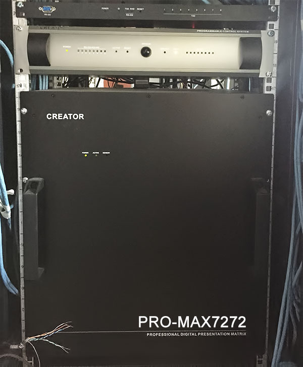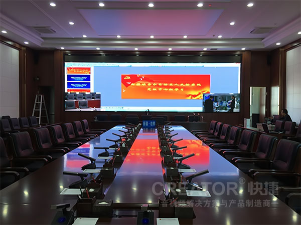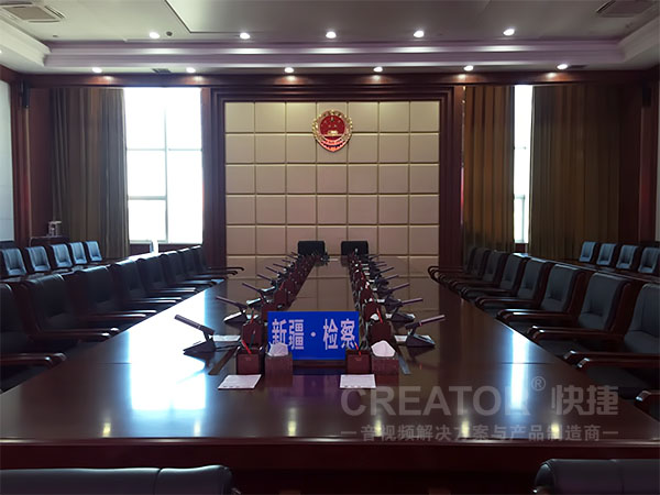 CREATOR快捷以PRO-MAX7272混合拼接矩阵为核心,配置CR-PGMIII高性能网络化可编程控制主机、CR-LAN G7S嵌墙式画中画可编程触摸屏、CR-G21HD画中画可编程触摸屏等产品,全面装备新疆自治区检察院,打造了一个集KVM、信号切换管理、集中控制等功能于一体的现代化的会议中心。