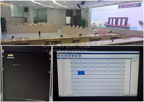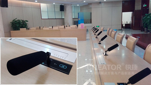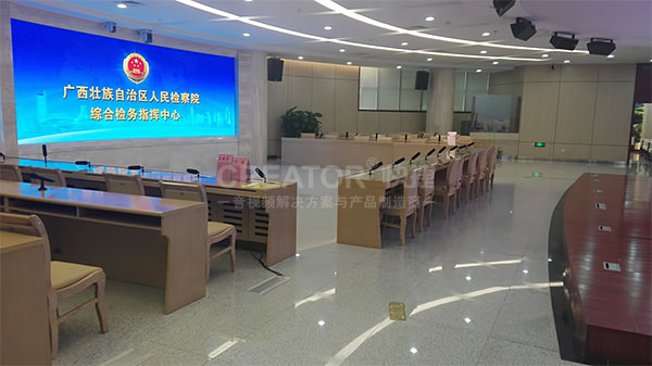 为满足广西检察院综合检务指挥中心的会议功能,现场同时装备CREATOR快捷全数字会议系统。嵌入式发言单元优雅镶嵌在会议桌面,音质透亮清晰,电容触摸按键设计,无机械按键声,按键寿命长,防水设计;优雅的心形指向性电容式话筒高品质拾音,将实用性与艺术性完美结合,为检察院各项会议提供坚实有力的保障。