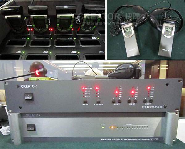 CREATOR快捷根据现场结构特点,将四个红外辐射面板CR-IR3001分别安装于法庭四角,CR-IR3001采用弧形结构,角度大,覆盖面广,具备超强发射能力,保证了法庭内全面无死角的信号覆盖。所以,现场的人员只需要佩戴16通道红外接收单元CR-IR3002A-16,根据语种需要调整接收频道,即可收听到高品质的译语输出。