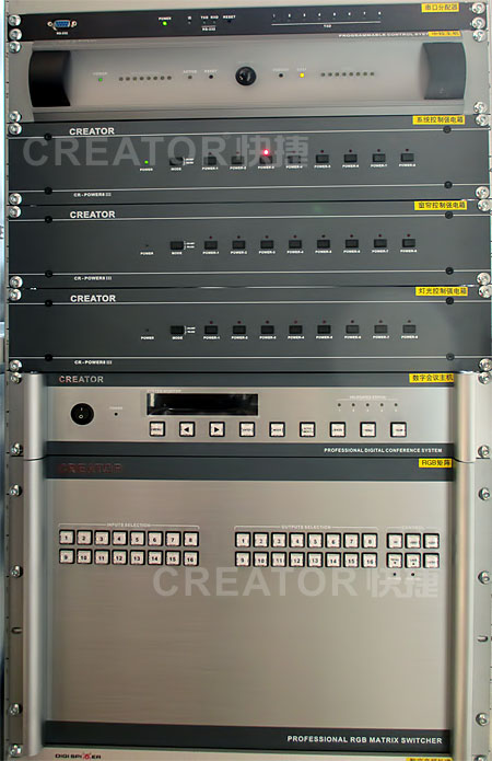 CREATOR快捷本次为华润医药量身定制的智能会议系统操作简便,功能强大,性能稳定,主要集成了CR-PGMIII中央控制主机、CR-RGB1616矩阵、CR-DIG5201全数字会议系统控制主机和嵌入式桌面话筒等产品,完美地控制摄像机、DVD、电视机、音频设备、信号源等设备。