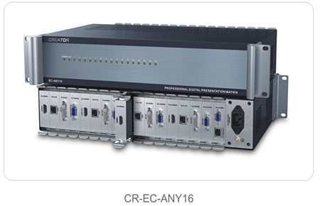 CREATOR快捷本次强势推出的新一代ANY系列无缝混插矩阵,不仅支持HDMI/DVI/复合视频/VGA/WiFi/音频/CAT5输入输出,而且输入输出端口用户可灵活配置,能任意切换和传输多种格式的音视频信号,切换过程中不会产生裂缝、抖动、黑屏等。