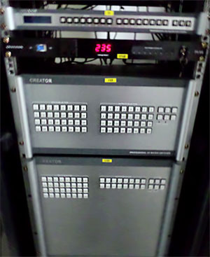 在信号管理与切换上,考虑会场的信号源特点,CREATOR快捷将旗下"CM"模块化高清切换与传输系统中的PT-AV3216、PT-RGB3216、Pt-3G HD-SDI0808三款矩阵切换器搭配使用,对整个会场所有信号进行有效的管理与切换。